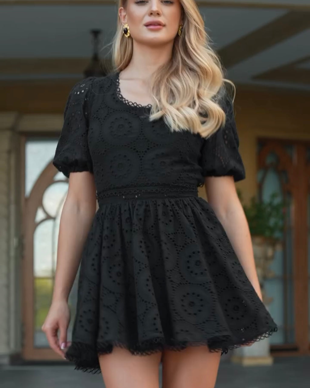 Elegant and sultry, this black lace mini dress features a delicate open-back design with a tie closure at the neck. The intricate lace detailing adds a touch of sophistication, while the short length enhances its bold, feminine appeal. Perfect for evening events or special occasions, this dress is a statement of timeless allure.