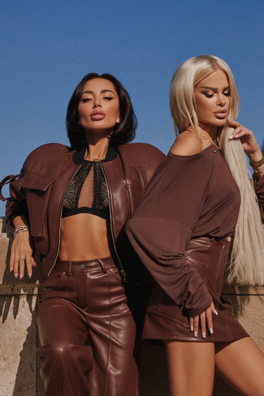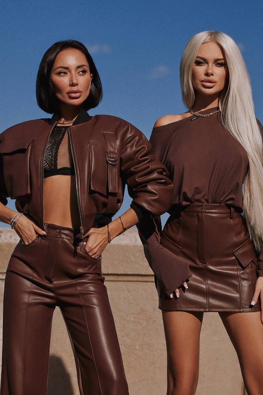A trendy mini skirt crafted from high-quality brown eco-leather. The fitted design emphasizes the silhouette, while the front button and pocket details add a stylish and functional touch. Ideal for creating bold, modern outfits with a touch of elegance.
